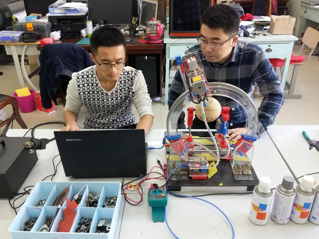 我校学生廉贺成、张超、汪菲茹设计制作,杨志强、徐国新老师指导的《球面激光雕刻机》和马为杰、石鑫磊、程培旭设计制作,李瑞洋、张兆刚老师指导的《基于自动化生产过程的机械系统综合实验台》获得大赛一等奖;孙晓东、刘志飞设计制作,郎庆阳、杨志强老师指导的《多彩心情-模块化功能电路开发平台》获得大赛三等奖。