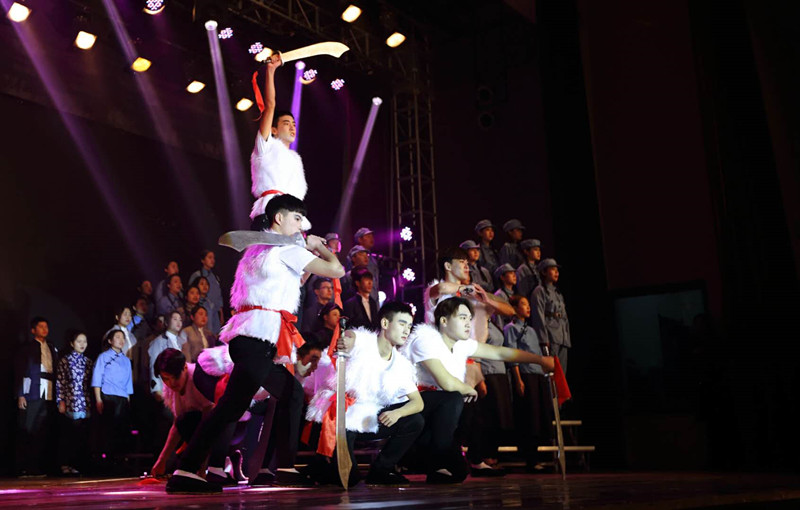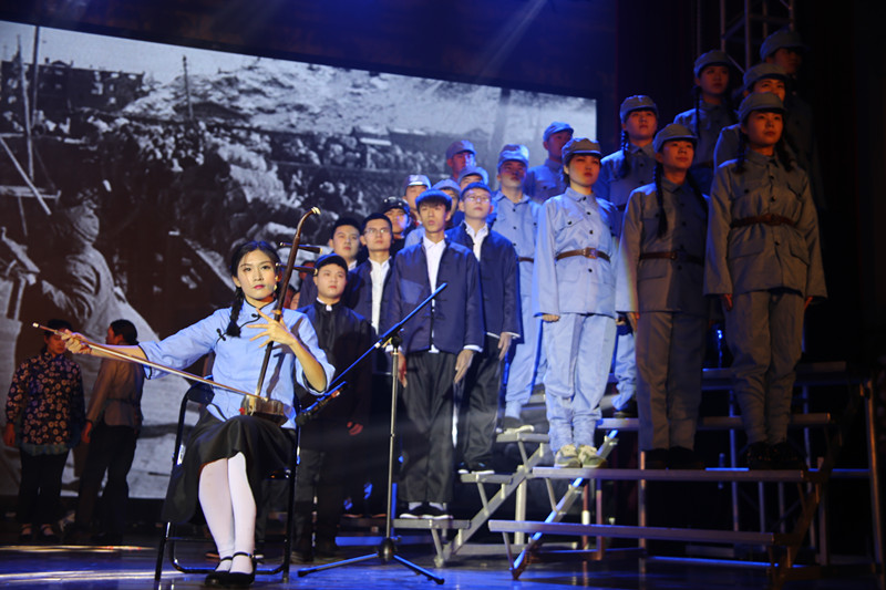 之后演出正式开始,本场演出的所有节目由我校师生二百多人担纲创演。翟晓剑、郭泓江老师担任总导演。由唐梅、杨建平、陆慧、贾楠、曹赫楠等集体进行文稿创作。由学校团委、马克思主义学院、学生工作处、人文艺术学院、资源与土木工程学院、大数据学院等部门协力合办。由校团委大学生艺术教育中心(大学生乐团、大学生合唱团、大学生舞蹈团、大学生演讲与口才协会)承演。追求艺术原创、史实再现的师生们精诚合作、集思广益,兼职业余时间连续奋战四十余天,用抗联精神打造了这张音乐盛宴。