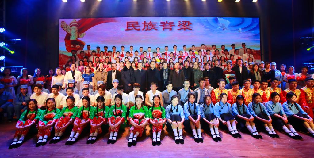 整场演出恢弘震撼,振奋人心,现场掌声不断。演员师生同台动情演绎,观众身临其境,通过四大篇章的巨作,将东北抗联在长期、艰苦、壮烈的对敌14年的斗争中,用鲜血和生命铸就的忠贞报国、勇赴国难的爱国主义精神,勇敢顽强、前赴后继的英勇战斗精神,坚贞不屈、勇于献身的不畏牺牲精神,不畏艰苦、百折不挠的艰苦奋斗精神,休戚与共、团结御侮的国际主义精神,体现的淋漓尽致,教育作用凸显。习总书记指出:“人民有信仰,国家有力量,民族有希望。”“一个有希望的民族不能没有英雄,一个有前途的国家不能没有先锋。包括抗战英雄在内的一切民族英雄,都是中华民族的脊梁。通过演出,民族的脊梁的含义,深入到每位现场观众的内心,作为的青年一代,作为育人之地,铭记历史,弘扬民族和红色精神,传承“民族魂”是我们必须肩负的历史使命,我们也将不断把此精神内化于心,付诸于实践,投入到学校的建设发展和建设中去,为学校的宏伟蓝图贡献自己的力量,为党代会献礼!