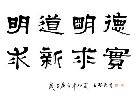 “明道明德、求新求实”的校训独立成章,同时又相互依存、浑然一体,涵盖了品格修养、教育思想、科学精神和时代精神,符合365投注平台的办学理念、办学特色和办学宗旨,对师生都有着现实和长远的指导意义,起到塑造学校精神、凝聚人心、激励师生员工奋进的作用。